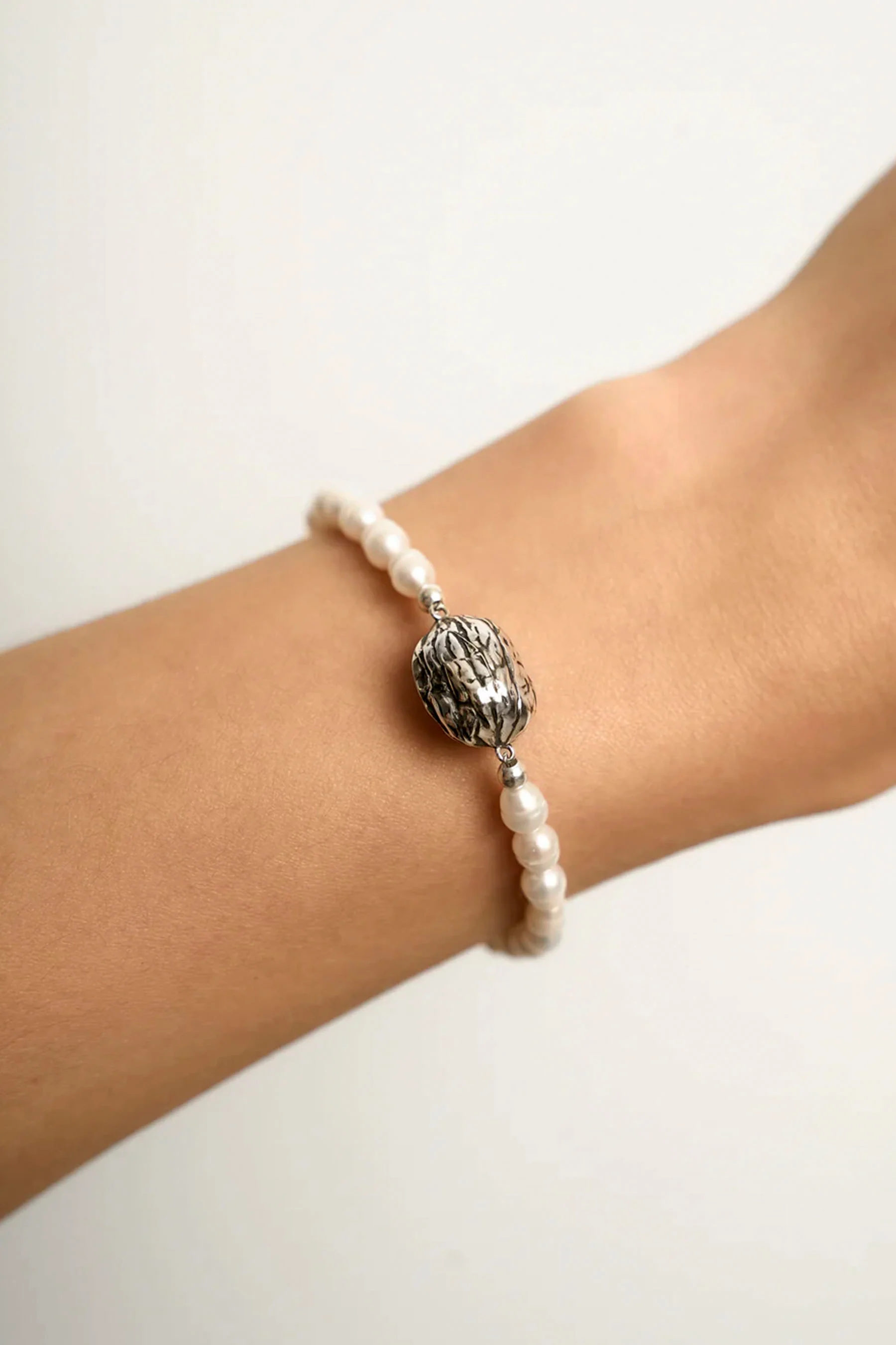 Bracelet with freshwater pearls and a silver Krakatuk pendant.