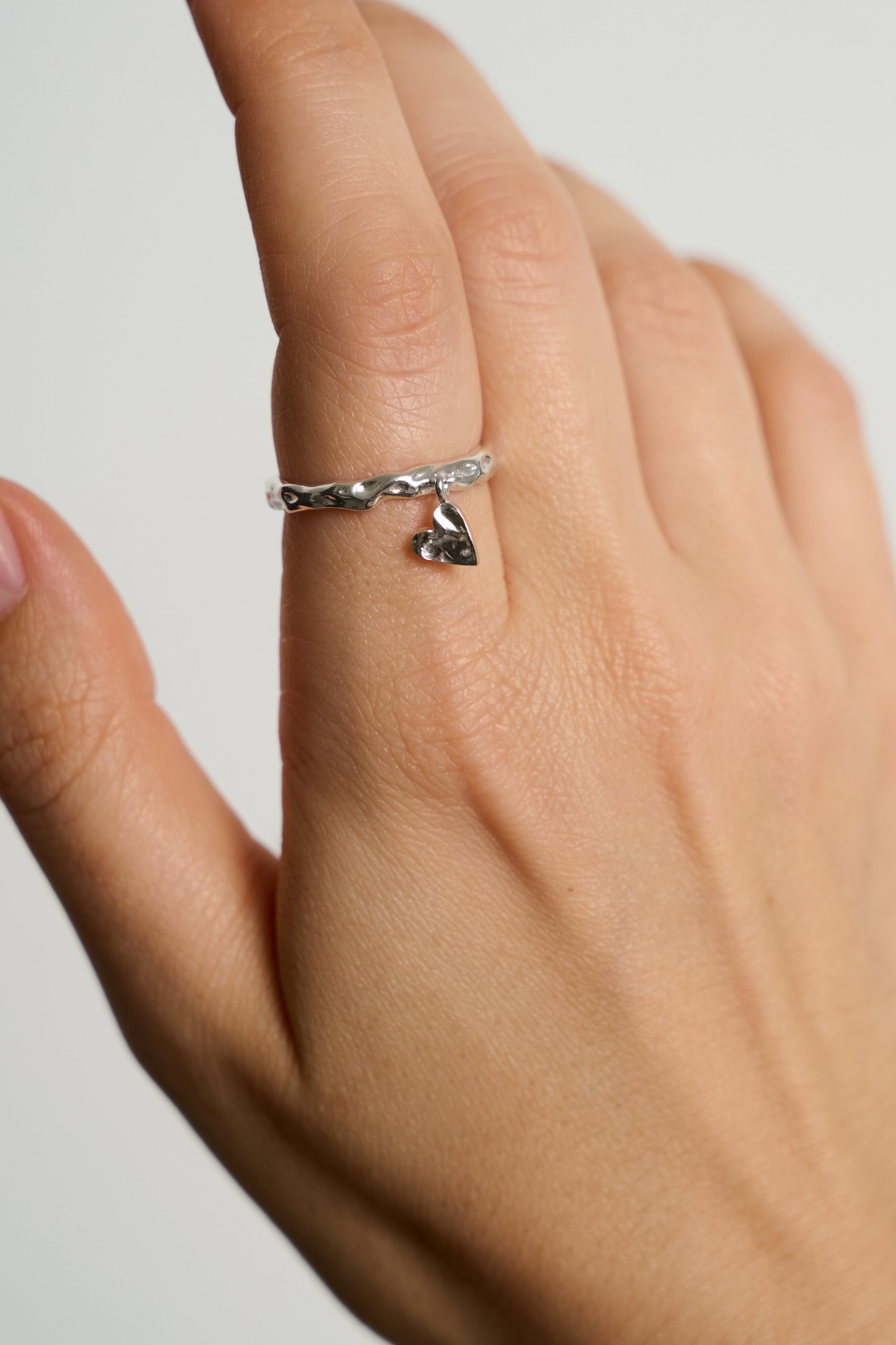Ring with heart-shaped pendant - 15 / Silver is backordered and will ship as soon as it is back in stock.