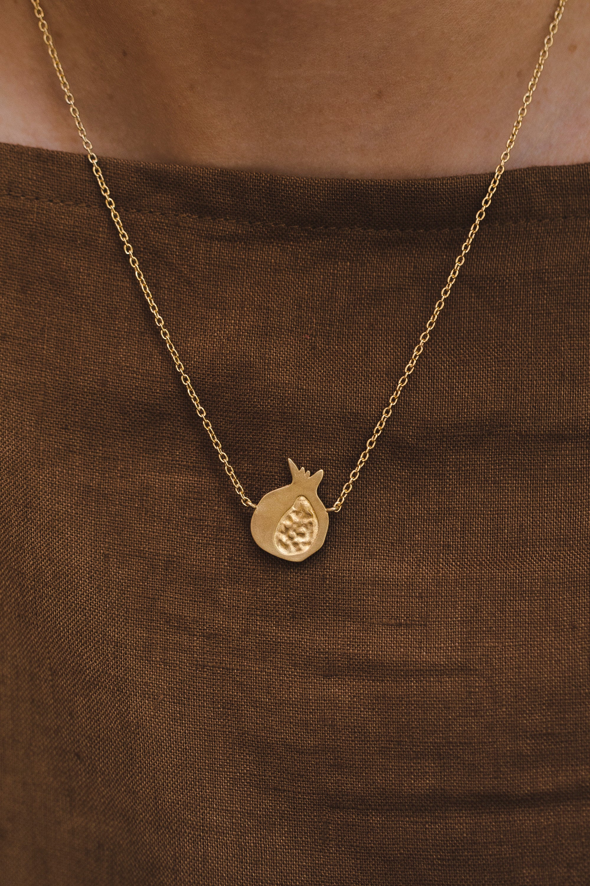 Elegant gold-plated necklace with a pomegranate-shaped pendant