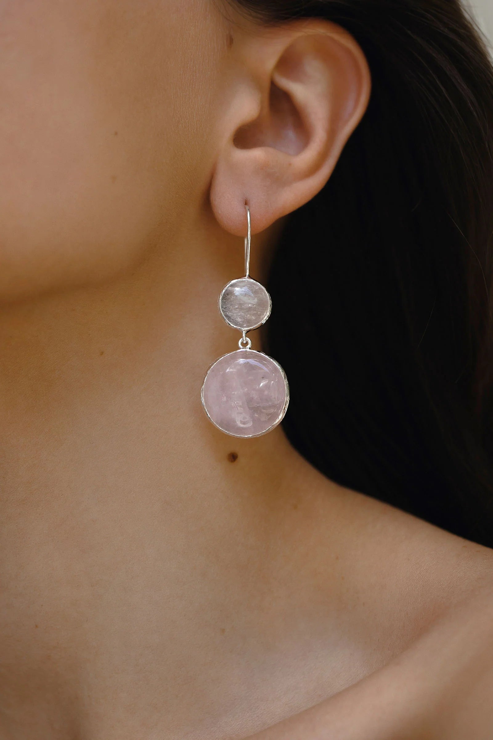 Náušnice s horským křišťálem a růžovým křemenem